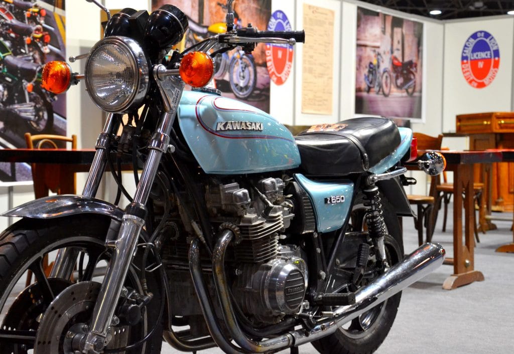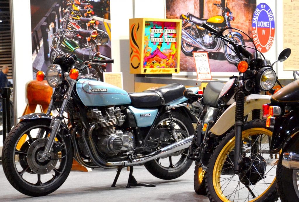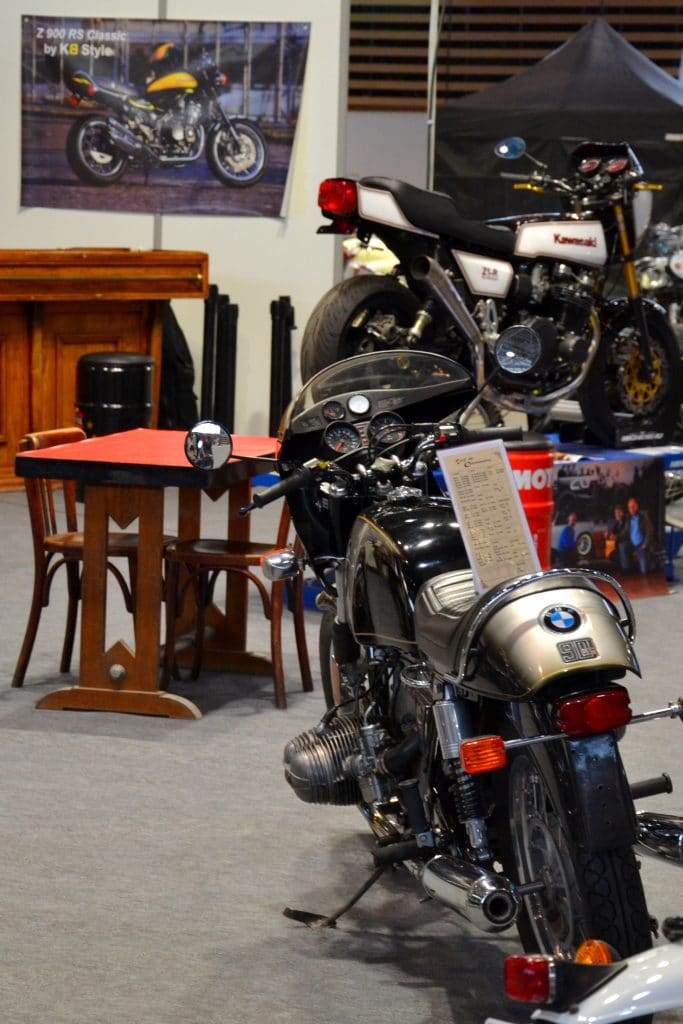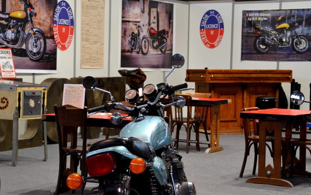 KB Style occupait un grand stand vintage (Hall 5, stand 11) avec une collection de motos restaurées des années 70 :