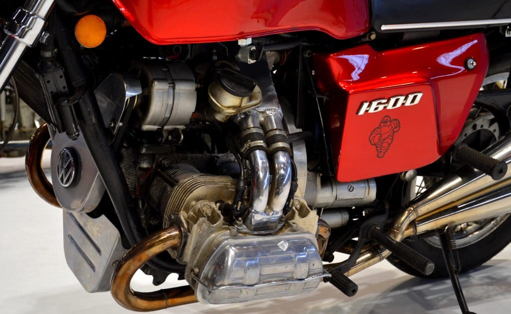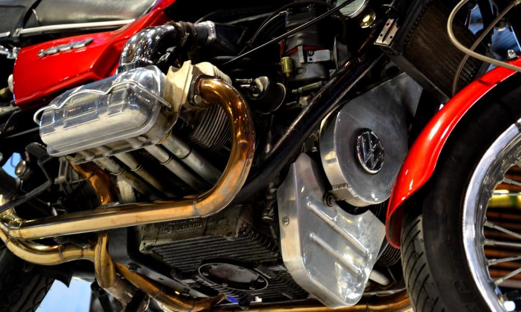 Exposition Big Blocks : moto à moteur VW 1600 Coccinnelle.