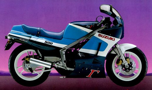 - RG 500 Gamma (1985) : 2 temps 95 CH, 156 kg, 236 km/h