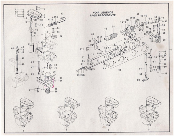 Le diamètre de passage des gaz de 28 mm est conservé, la coupe des boisseaux est modifiée, les gicleurs de ralenti passent de 20 à 17,5. Les puits d’aiguilles évoluent et les aiguilles sont désormais placées au cran n° 2. Cette rampe équipe également les modèles Z1b de 1975.