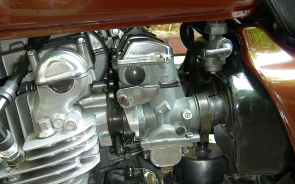 A partir de 1976, de nouvelles normes anti-pollution applicables aux U.S.A. amènent le constructeur à réduire le diamètre de passage des gaz de 2 mm. Le modèle Z 900 A4 est équipée d’une toute nouvelle rampe Mikuni VM 26 SS.