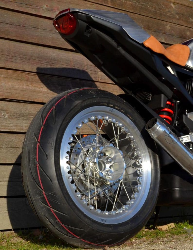 Les roues en aluminium ont été spécialement créées pour cette machine unique.