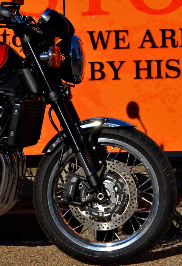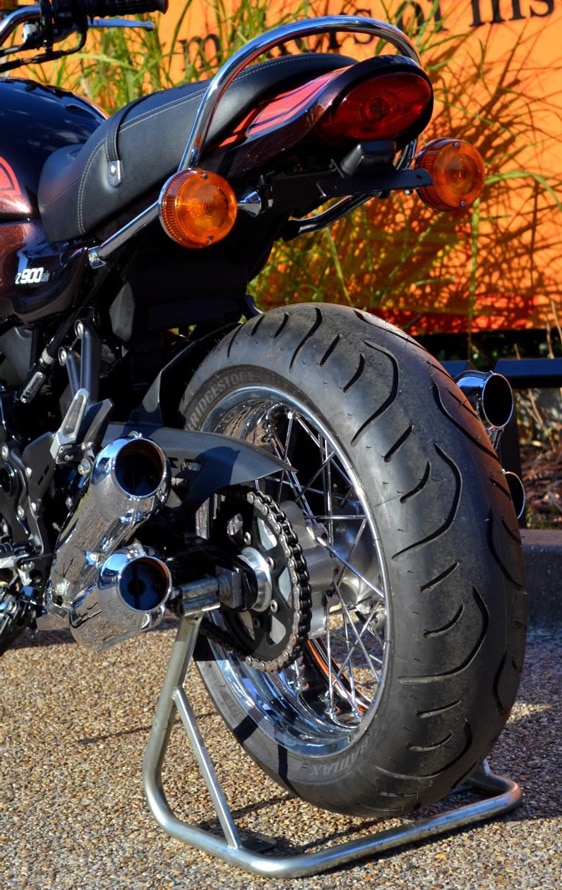 La roue AV est en 18' au lieu de 17' sur la Z900 RS d'origine.
