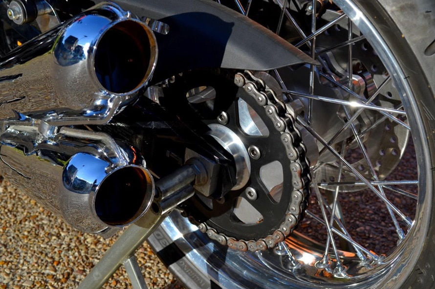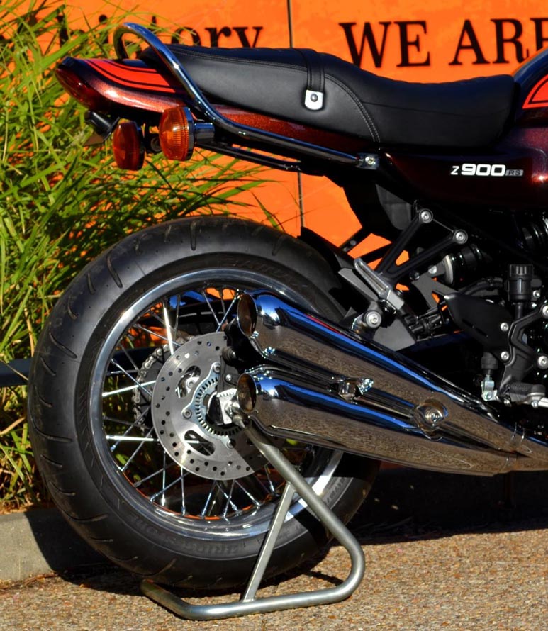 Le disque de frein AR et la couronne d'origine de la Z900 RS sont conservés.
