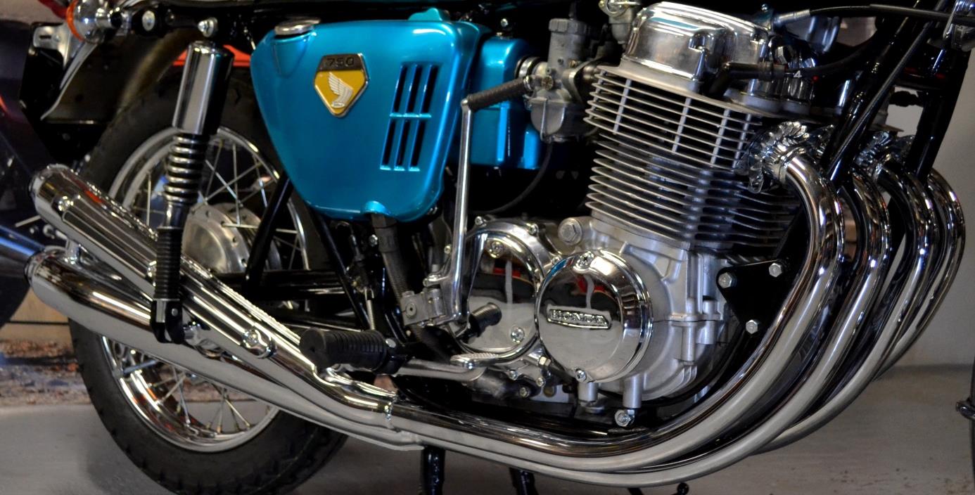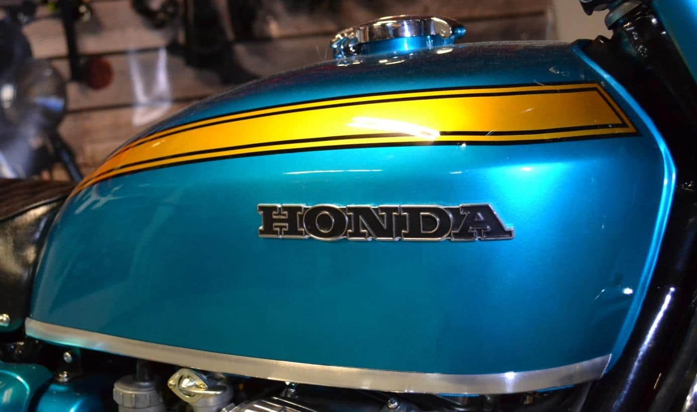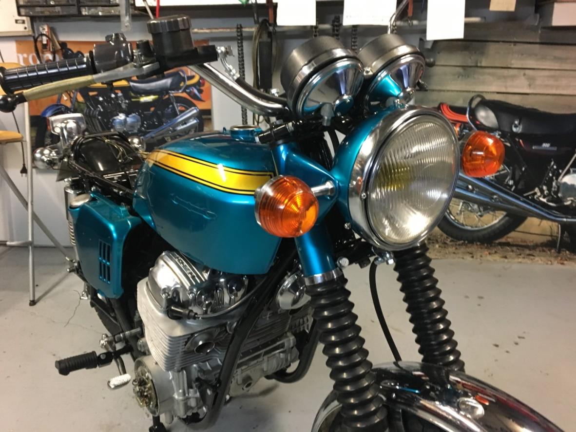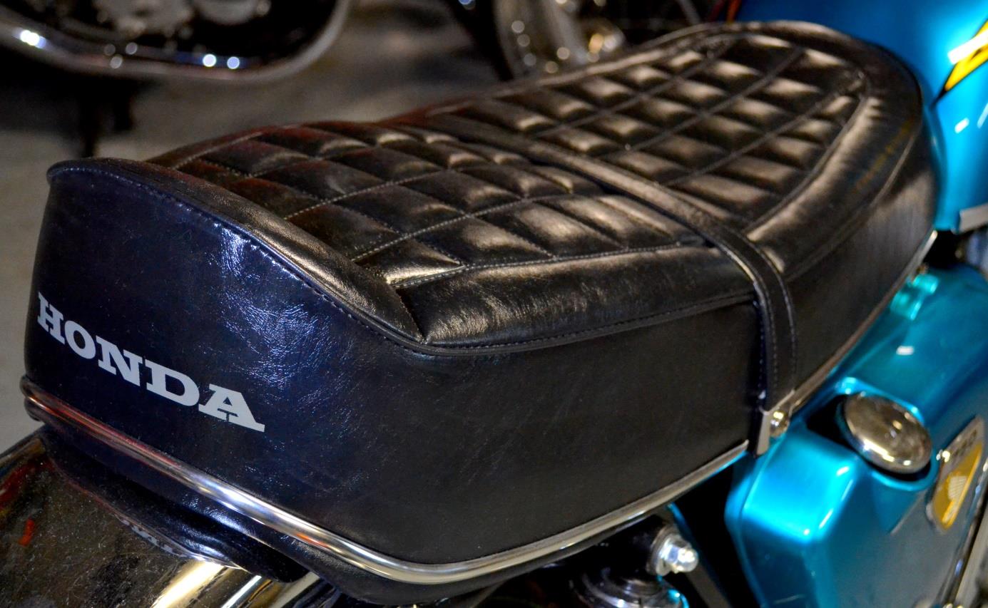 La carrosserie a été repeinte en coloris Candy Blue Green : la CB 750 1969 n’a pas été commercialisée dans ce coloris en France.