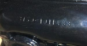 On reconnait un cadre de CB 750 HONDA 1969, à la platine AR de fixation du bac batterie : celle-ci est pleine sur les K0, ajourée sur les K1 de 1970 et les modèles suivants.