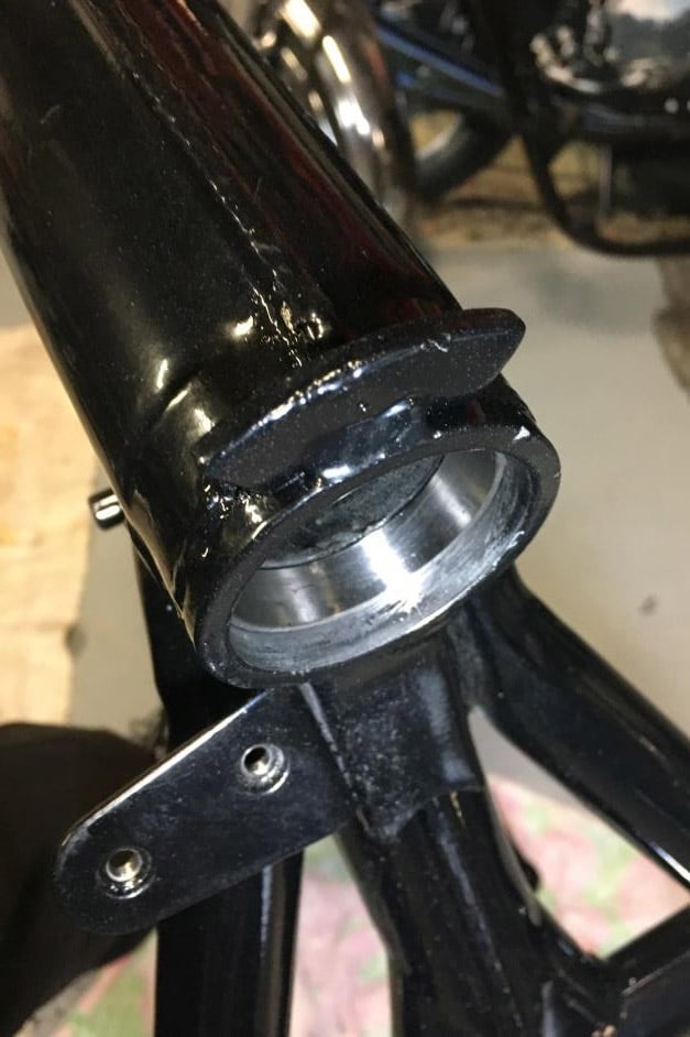 Le marquage à froid de la colonne de direction demeure lisible après mise en peinture du châssis.