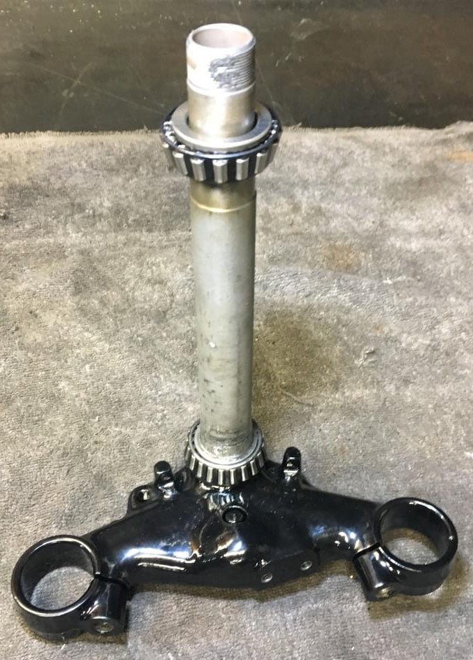 Le té supérieur en forme de pyramide est celui d’origine de la moto.