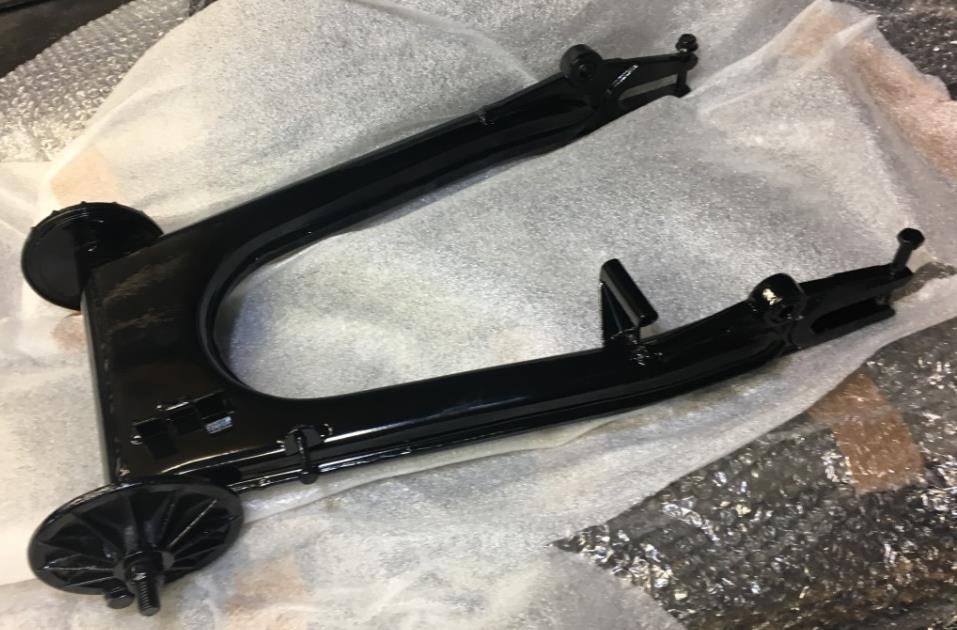 Les autres pièces métalliques de la partie-cycle ont reçu le même traitement que le châssis :