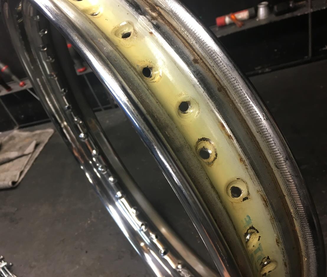 Le moyeu AR est authentique et très rare moyeu de CB 750 K0 à deux trous.