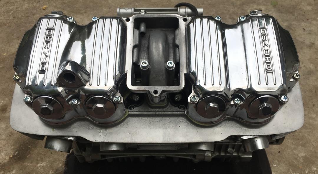 Le couvre arbre à cames et ses bouchons d’accès aux culbuteurs ont été polis.