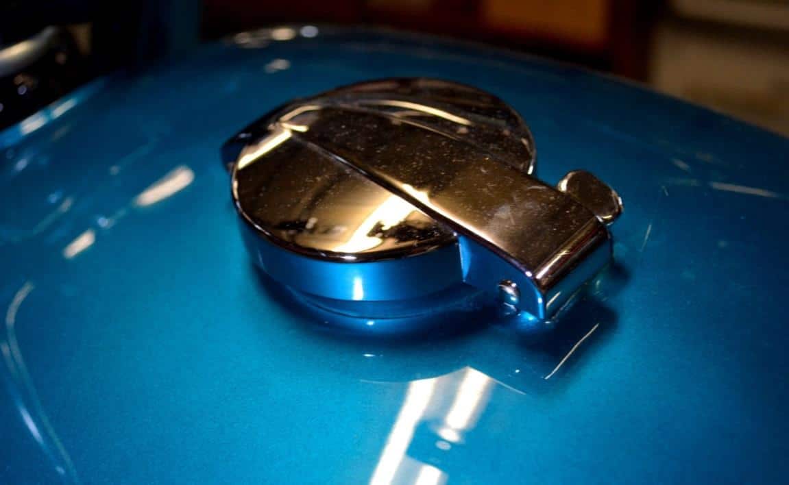 La trappe de réservoir est neuve (pièce d’origine Honda) et dépourvue de serrure à clef conformément au modèle CB 750 1969.