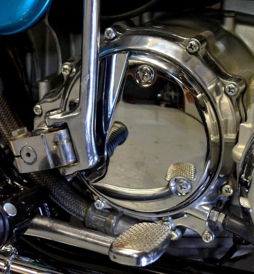 Le couvercle d’embrayage chromé est neuf (pièce d’origine Honda).