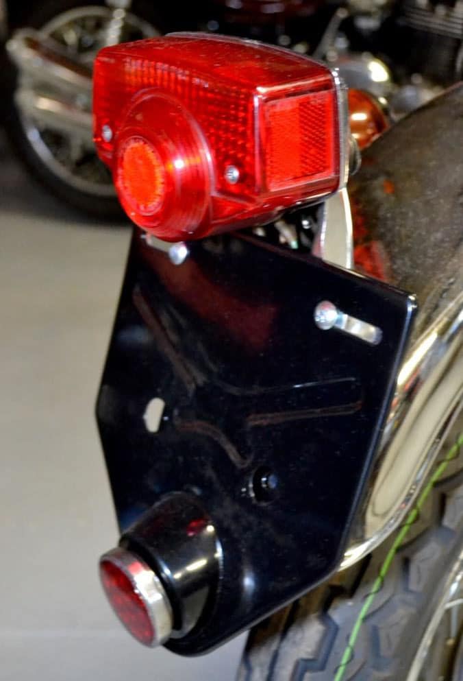 Le support de plaque et son catadioptre sont d’origine : ils étaient montés sur les CB 750 destinées au marché français.