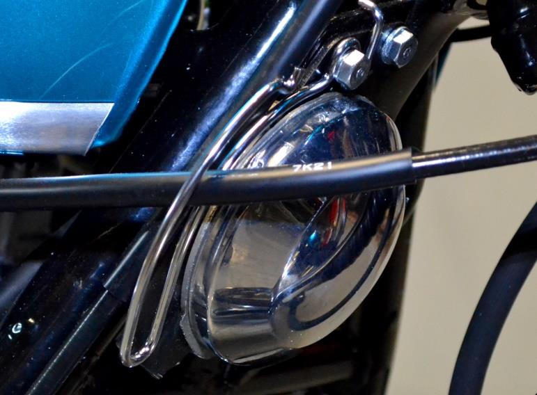 Les clignotants sont ceux d’origine de la moto, de même que les tiges chromées et les écrous avec fils de masse.