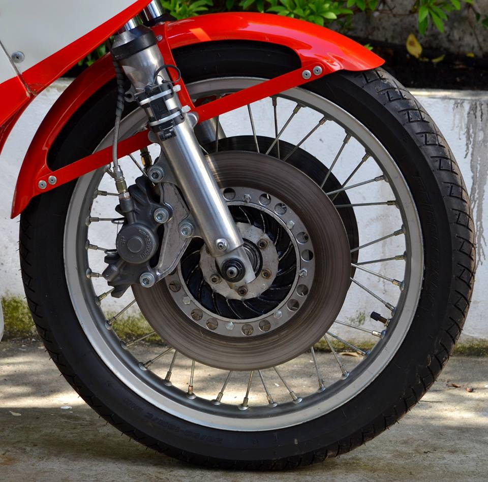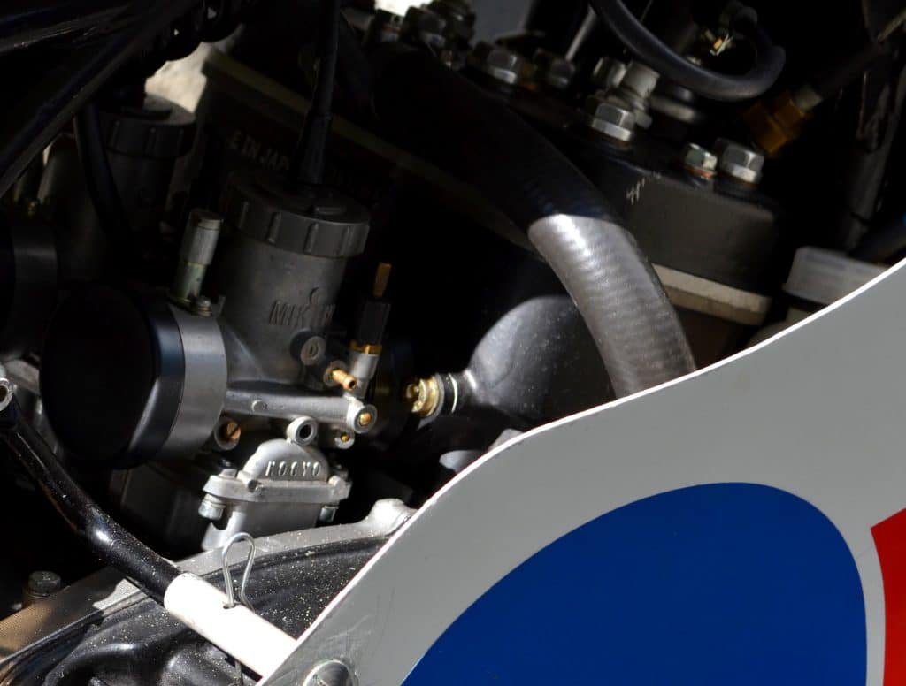 Il est alimenté par deux carburateurs Mikuni VM34SC et délivre une puissance de 62 CH à 11 500 tr/mn.