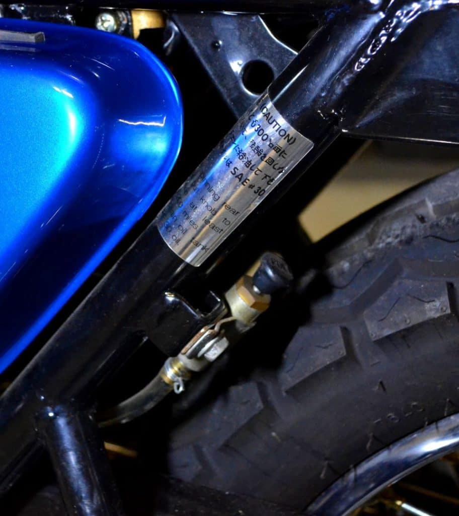 La fourche a été reconditionnée en pièces neuves : bouchons alu, tubes, ressorts, caches poussière, joints spis, huile SAE 20