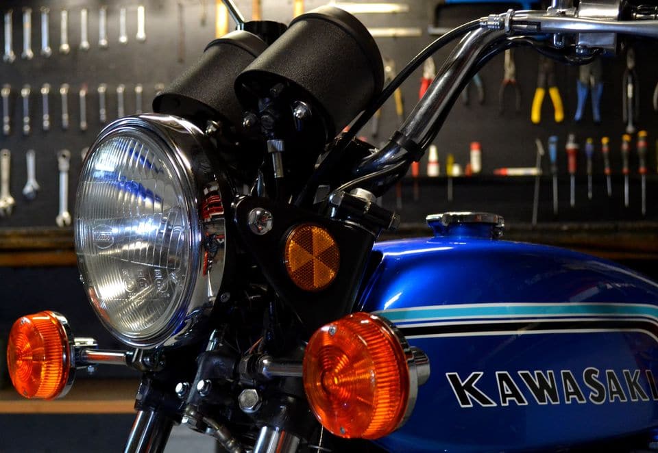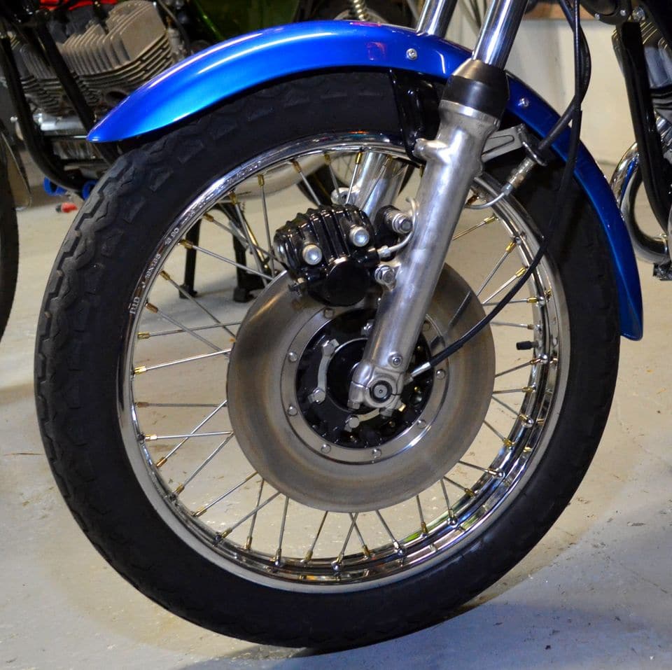 Cette machine de pré-production comporte encore de nombreuses pièces issues de la H1 (axe de kick, collerettes d’échappement, levier d’embrayage) ou de la S2 (supports clignotants, frein de direction).