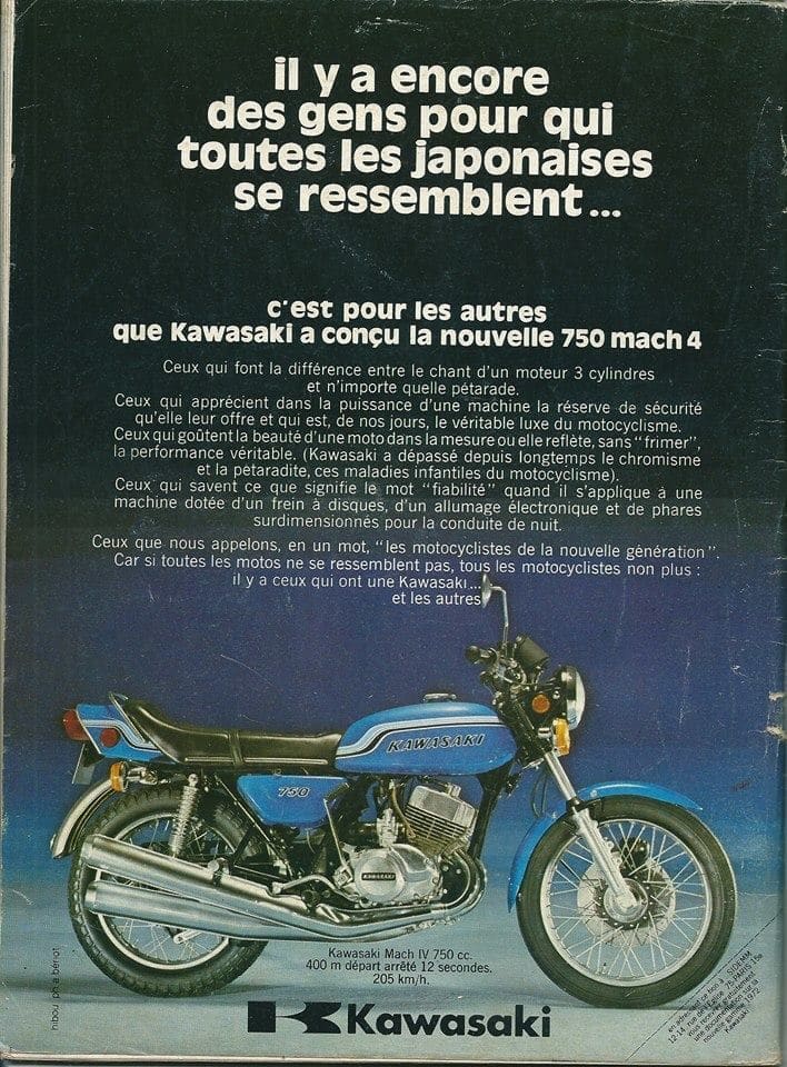 La Kawasaki 750 H2 Mach IV est présentée à l’automne 1971.