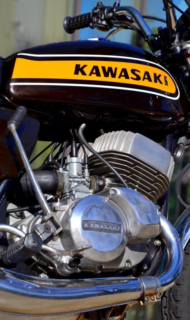 La 750 H2B 1974 constitue la première évolution de la 750 H2 Mach IV présentée fin 1971 - la version H2A de 1973 étant demeurée très proche du modèle initial de 1972.