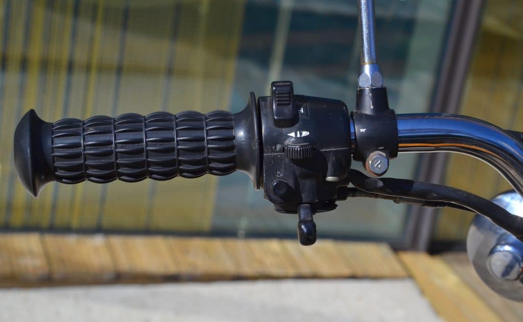 Sur les premières 750 H2 Mach IV, la commande se trouve du côté droit. Au démarrage, cela oblige à actionner, simultanément et avec une seule main, la poignée de gaz et la commande de starter.