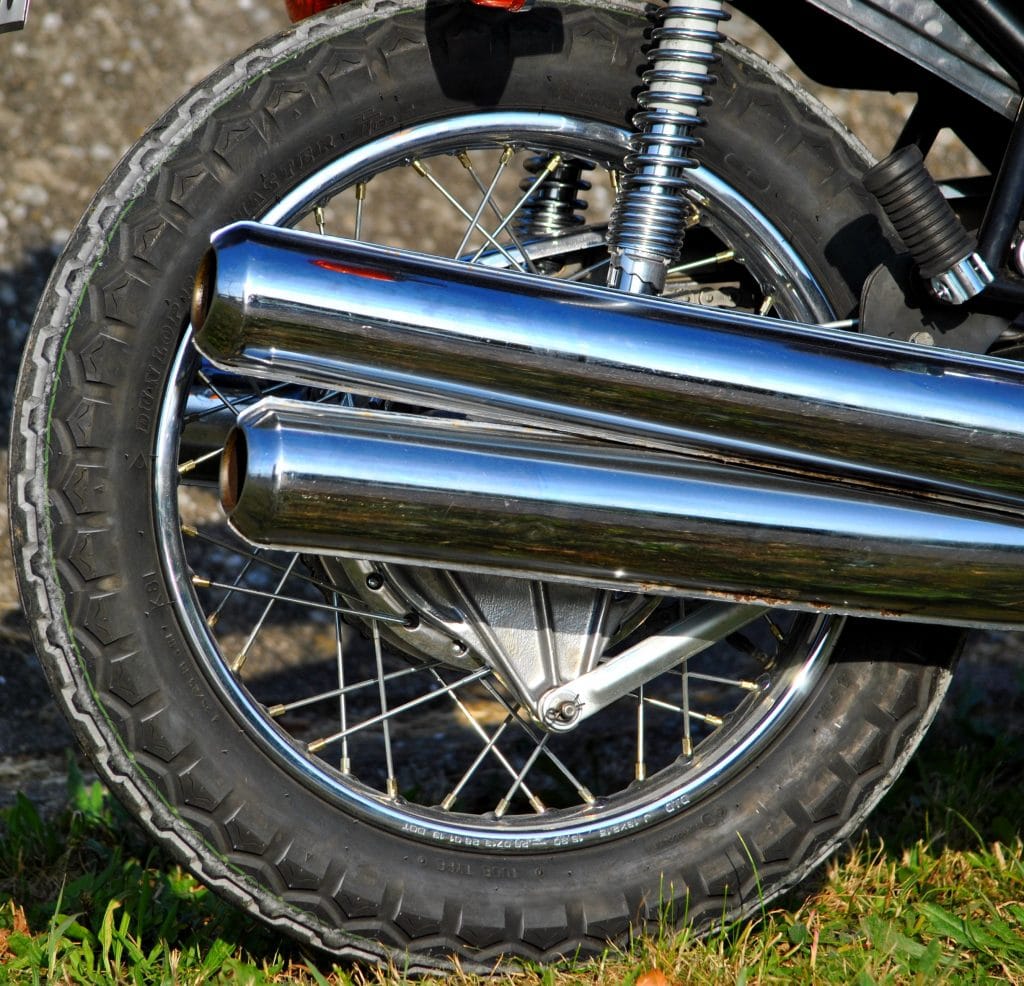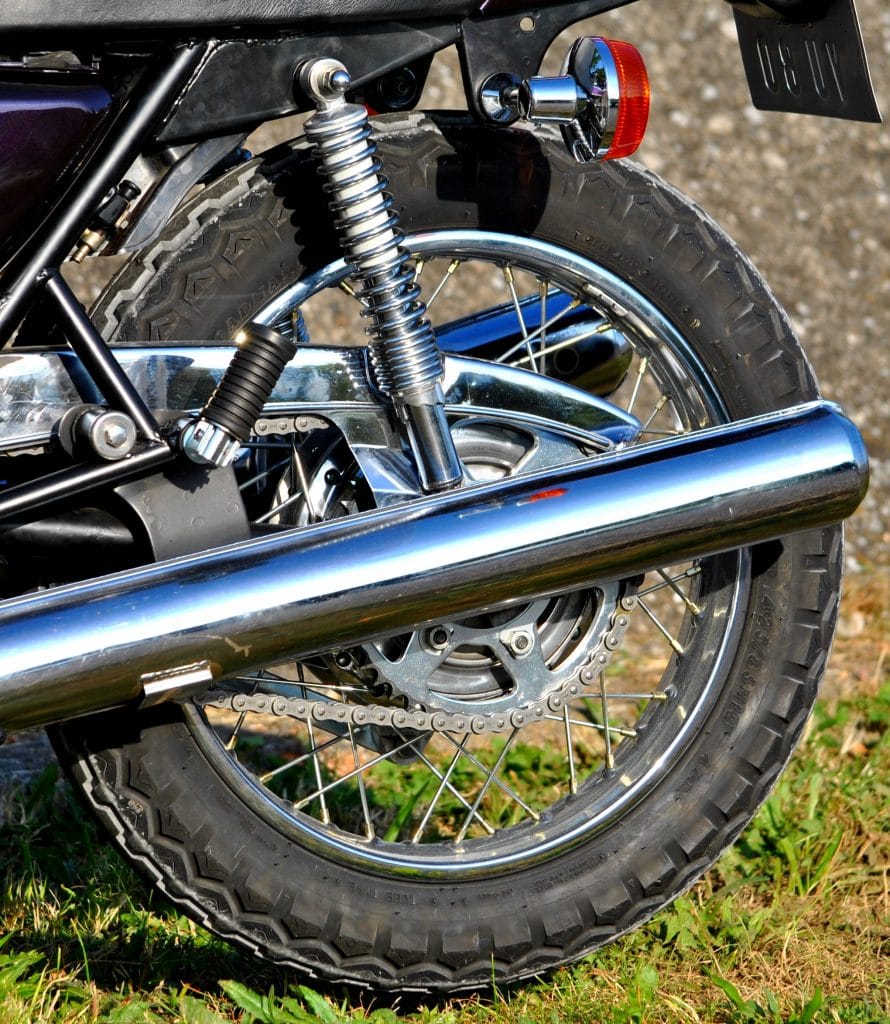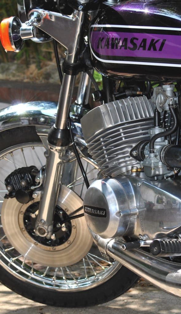 - la 750 Mach IV était sujette aux vibrations, la marque d'Akashi a rajouté des silentblocs à tous les niveaux : fixations moteur, pots d'échappement, repose-pieds.