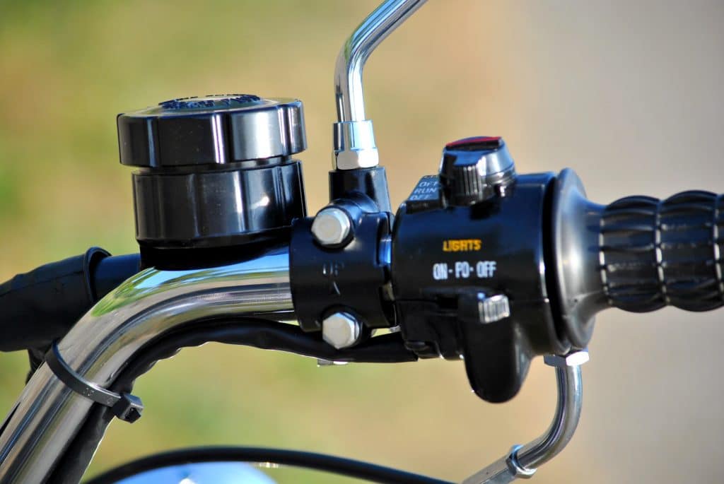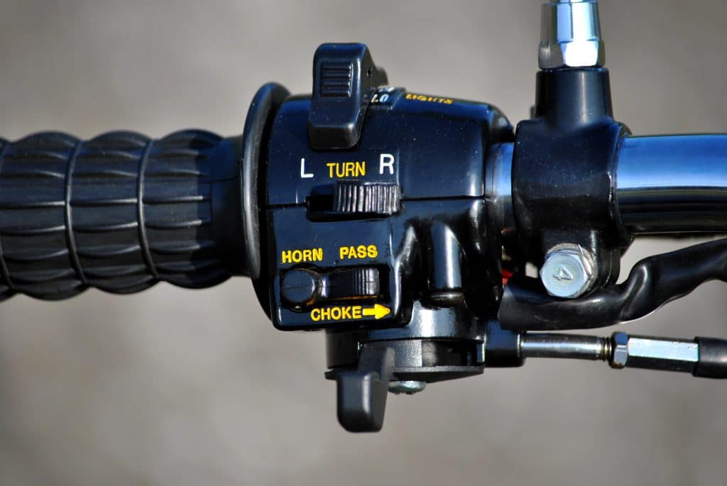 - côté gauche : starter, clignotants, inverseur code/phare, klaxon et appel de phare