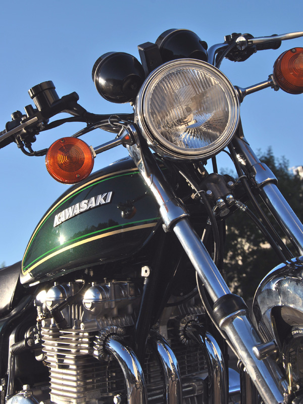 Kawasaki Z900 A4 de 1976, d'origine française, restaurée en atelier spécialisé.